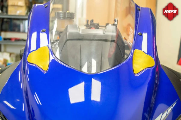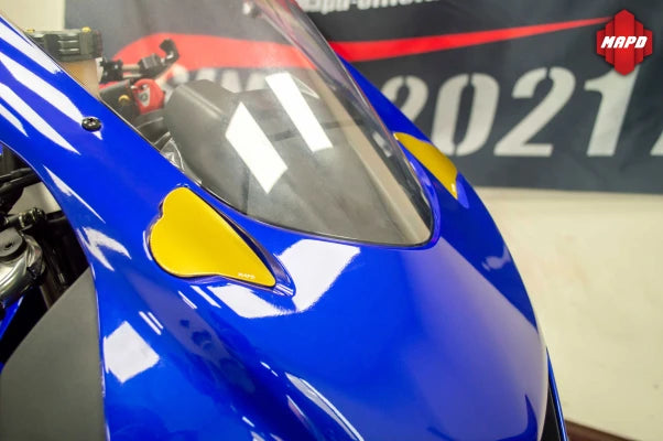 CNC 3D-machined from 6061 aluminum alloy, these mirror delete plates are designed to cleanly cover the mounting points left behind after removing the OEM mirrors—perfect for track use or riders who have converted to bar-end or wing-style mirrors.