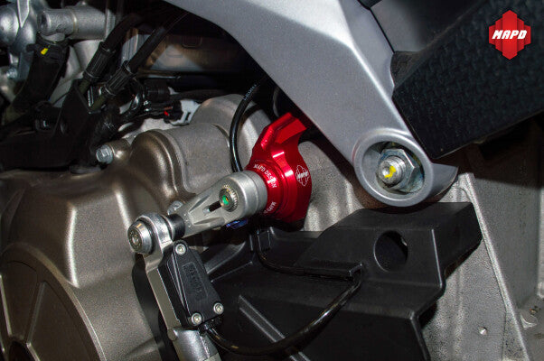 The integrated gear position sensor features a built-in quick shifter cable holder, offering a clean, race-inspired setup with no compromises in functionality.